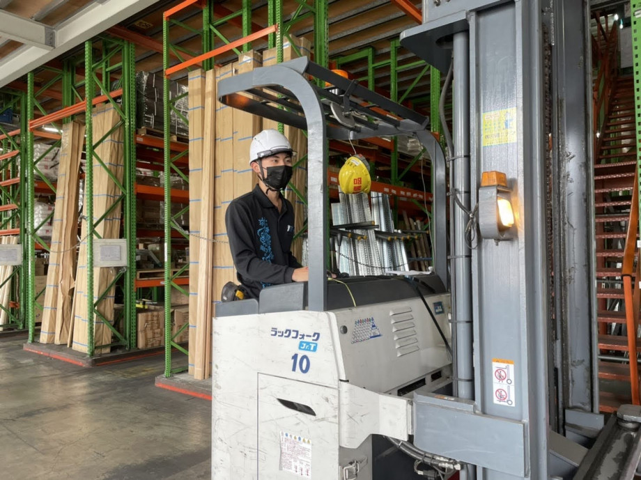 発注した商品が入荷してくるのでトラックから下ろし、検品して倉庫内に納める。